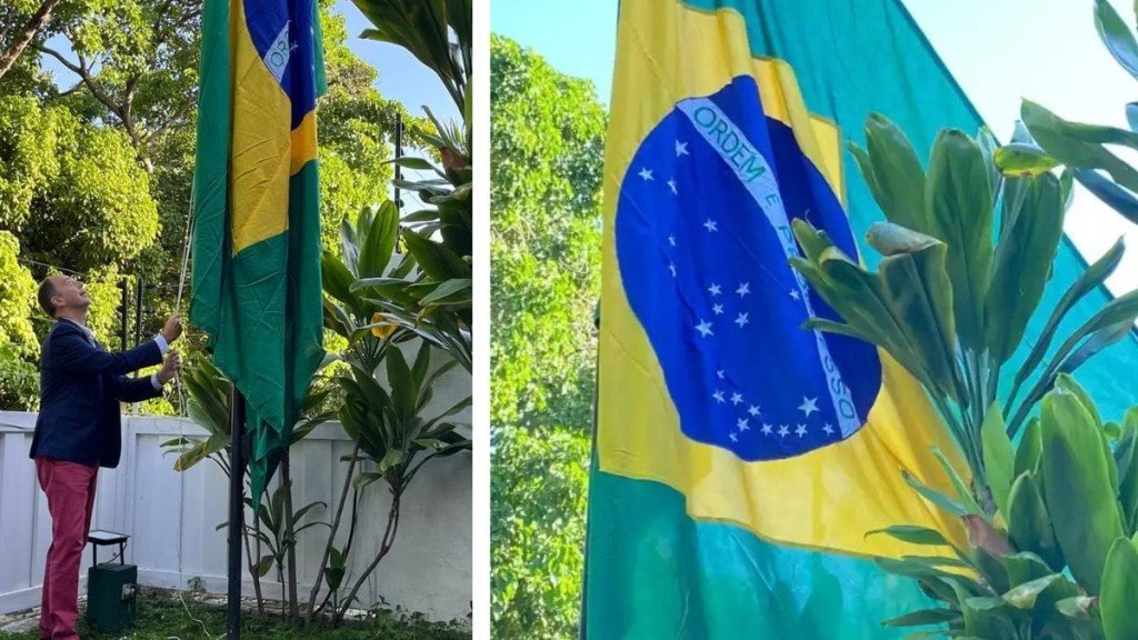 A bandeira brasileira foi hasteada na sede da Embaixada da Argentina em Caracas, após o governo do presidente Luiz Inácio Lula da Silva (PT) ter se oferecido para assumir a representação diplomática e consular de Buenos Aires na capital da Venezuela, bem como a segurança do prédio e a proteção da integridade física dos refugiados de oposição abrigados no local.
