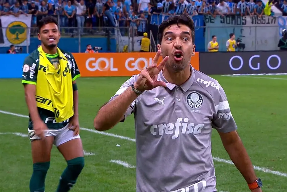 Abel Ferreira foi para os vestiários da Arena Grêmio antes do fim da derrota do Palmeiras para o time gaúcho, por 1 a 0, nesta quinta-feira, pelo Brasileirão. O treinador se irritou com a marcação de uma falta contra o Verdão nos acréscimos e deixou o campo fazendo um sinal com a mão e repetindo a frase:
