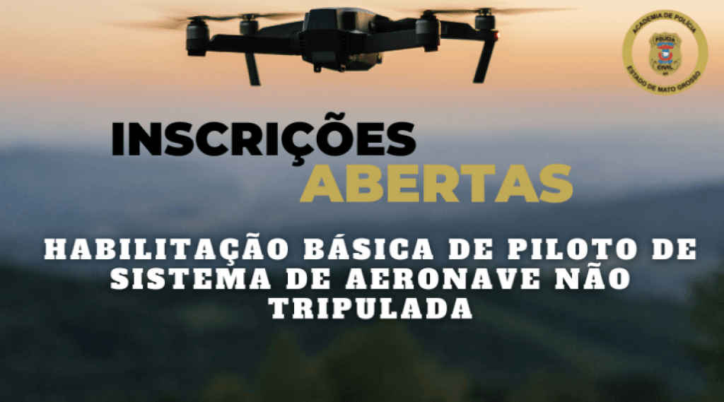 A Academia de Polícia Judiciária Civil de Mato Grosso publica o Edital nº. 001/2024 – ACADEPOL/PCMT para abertura das inscrições para candidatos à Habilitação Básica de Piloto de Sistema de Aeronave Não-Tripulada – Classe 3 (HBPSANT-C3). As inscrições vão de 30 de janeiro a dia 16 de fevereiro.