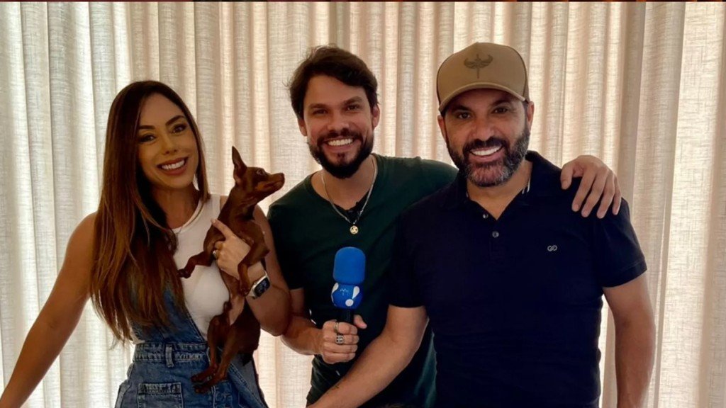 Na ocasião, o influenciador foi recebido pelo casal Deia Cypri e Edson, da dupla Edson & Hudson. Ele bateu um papo com a esposa do cantor que mostrou um pouco de suas atividades diárias.
