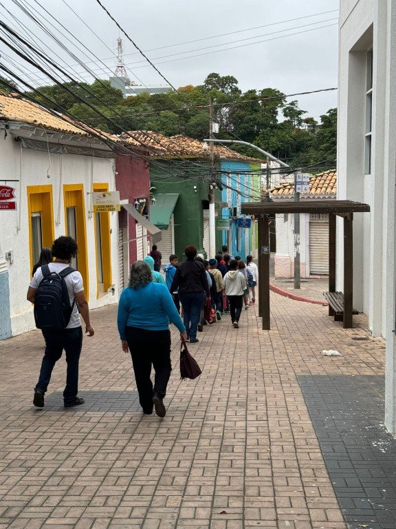 Promovido pela Prefeitura de Cuiabá, por meio da Secretaria Municipal de Cultura, Esporte e Lazer, o projeto ‘Eu Candeeiro’ segue com a programação aos fins de semana, começando sempre com as visitas escolares. Nesta quarta-feira (15), foi a vez dos alunos da Escola Municipal de Educação Básica-EMEB Francisco Pedroso da Silva, localizada no bairro São Francisco na capital. O ponto de partida foi na Praça Alencastro. A caminhada seguiu pelo Calçadão Ricardo Franco, Rua do Meio, chegando e passando pelo Beco do Candeeiro em direção à Praça da Mandioca, finalizando o passeio no MISC (Museu da Imagem e do Som de Cuiabá).