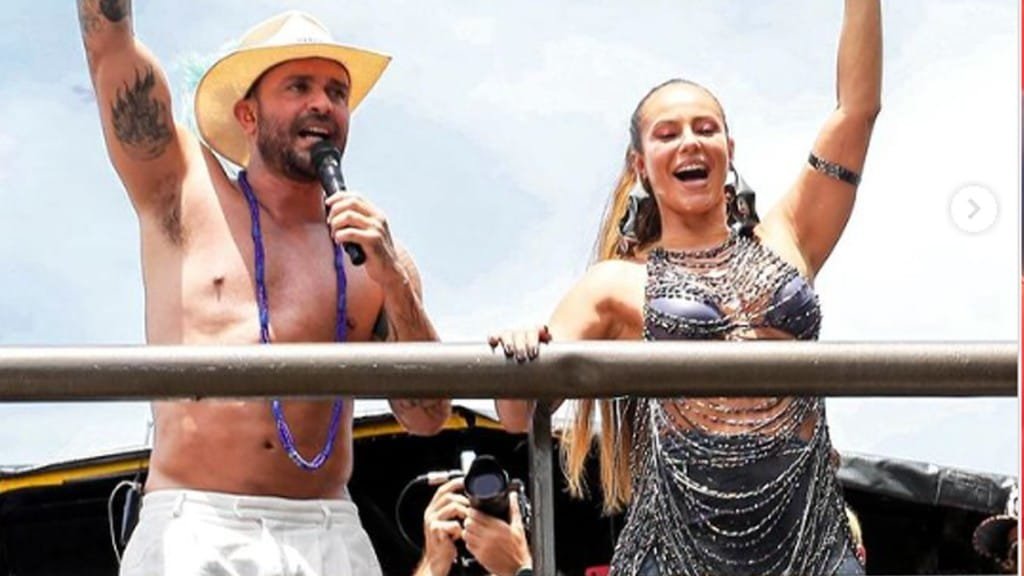 A atriz sambou debaixo do sol forte e também ficou do ladinho do amado em cima do trio elétrico, e chamou atenção com tanto samba no pé.