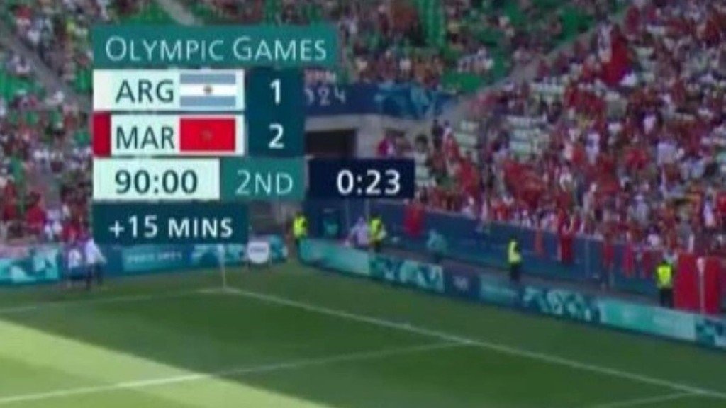 A Olimpíada de Paris-2024 já tem a sua primeira grande polêmica. Dois dias antes da cerimônia de abertura, o futebol masculino abriu extraoficialmente os Jogos Olímpicos com duas partidas, às 10 horas (de Brasília), desta sexta-feira. E o duelo entre Argentina e Marrocos foi alvo de situação incomum, com interrupção, invasão de gramado e retomada da partida 1h30min depois. Os jogadores das duas seleções voltaram a campo para jogar apenas quatro minutos de jogo. O time de Marrocos venceu por 2 a 1.