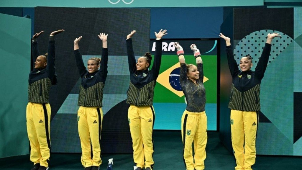 O Brasil conquistou, nesta terça-feira (30), a inédita medalha de bronze na ginástica artística nos Jogos Olímpicos de Paris de 2024 . A equipe brasileira composta por Rebeca Andrade, Jade Barbosa, Lorrane Oliveira, Flávia Saraiva e Júlia Soares conseguiu um total de 164.497 pontos. Os Estados Unidos, em primeiro, fizeram 171.296 pontos e a prata da Itália, 165.494.