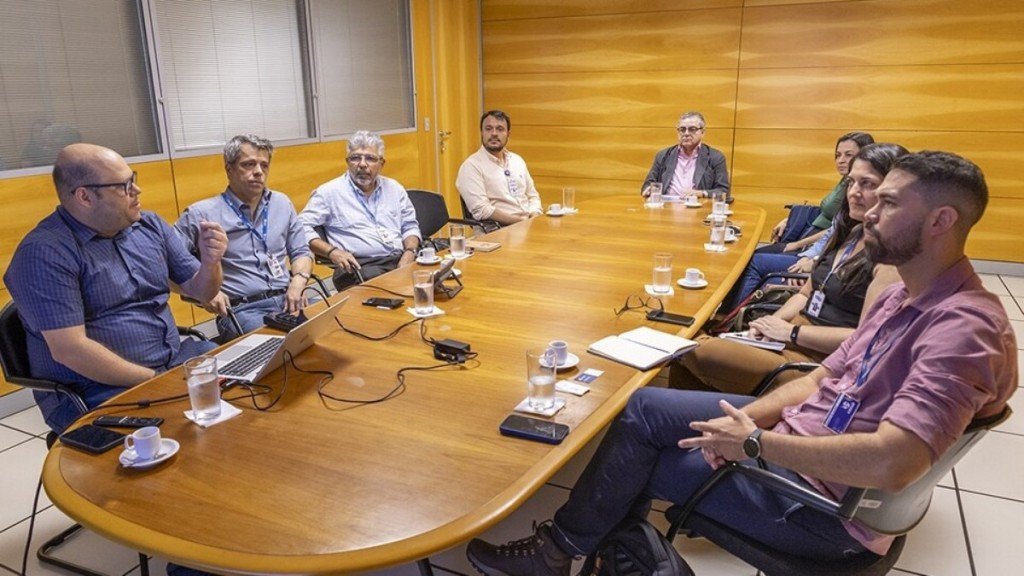 O diretor Comercial da Caesb, Sérgio Lemos, o assessor de Projetos Especiais e Novos Negócios, Fuad Moura, e o superintendente de Produção de Água (PPA), Diogo Gebrim, receberam a comitiva da Embasa composta pelo gerente de Tecnologia Operacional, Severino Neto, pela supervisora Operacional, Marisa Costa, pelo assessor da Diretoria de Operação Metropolitana, Júlio Mora, pelo gerente de Produção de Água, Jairo Lameira, pela supervisora de Suporte Técnico de Água Interior Norte, Ingryd Oliveira, e pela supervisora de Suporte Técnico de Água Interior Sul, Paloma de Menezes.