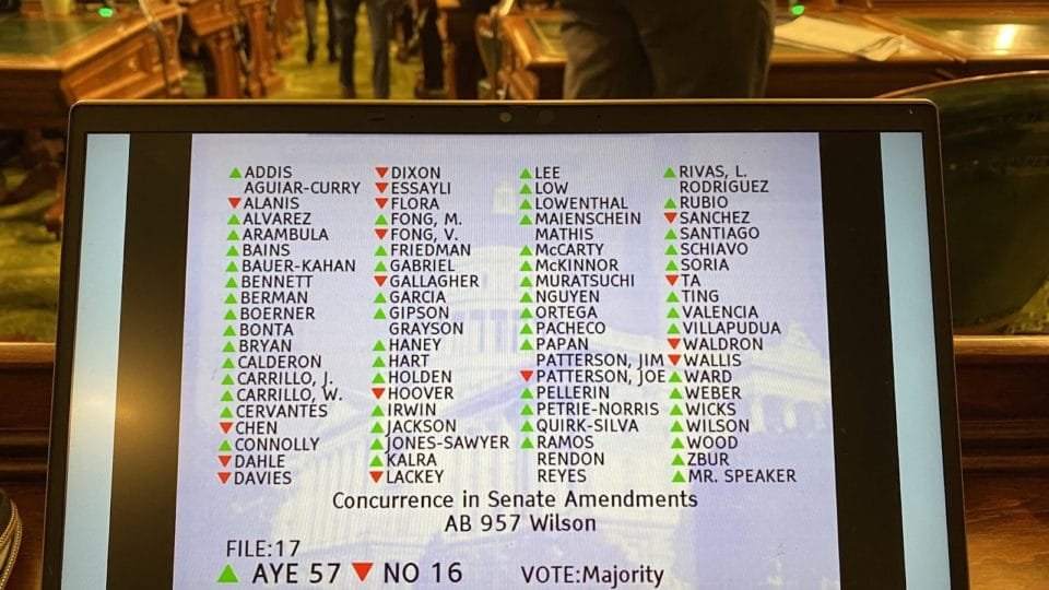 O projeto de lei dos legisladores democratas, AB 957, foi aprovado pela Assembleia por uma votação de 57-16, com votos dos dois partidos.