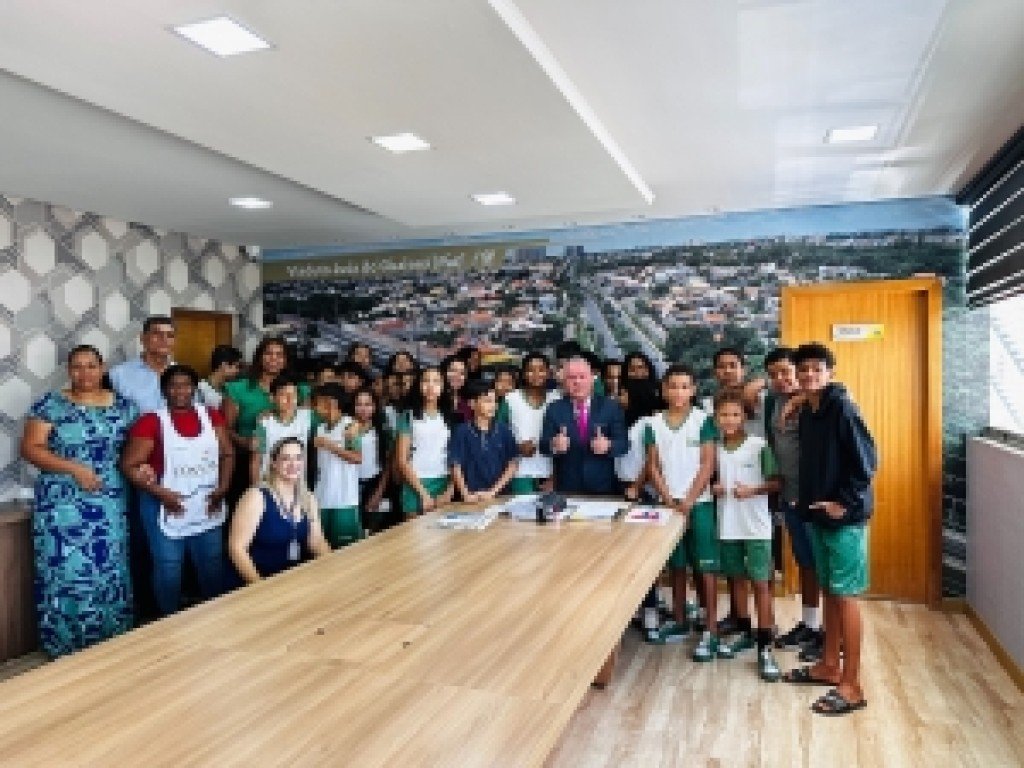 A Câmara Municipal de Cuiabá realizou na manhã desta quinta-feira (31), a última edição do Projeto Cuiabaninhos neste ano, com alunos da EMEBC Hilda Caetano de Oliveira Leite, da região do Distrito do Sucuri, zona rural de Capital. Durante todo o ano de 2024, cerca de 600 alunos foram recebidos em 14 encontros organizados pela Secretaria de Ações Institucionais.