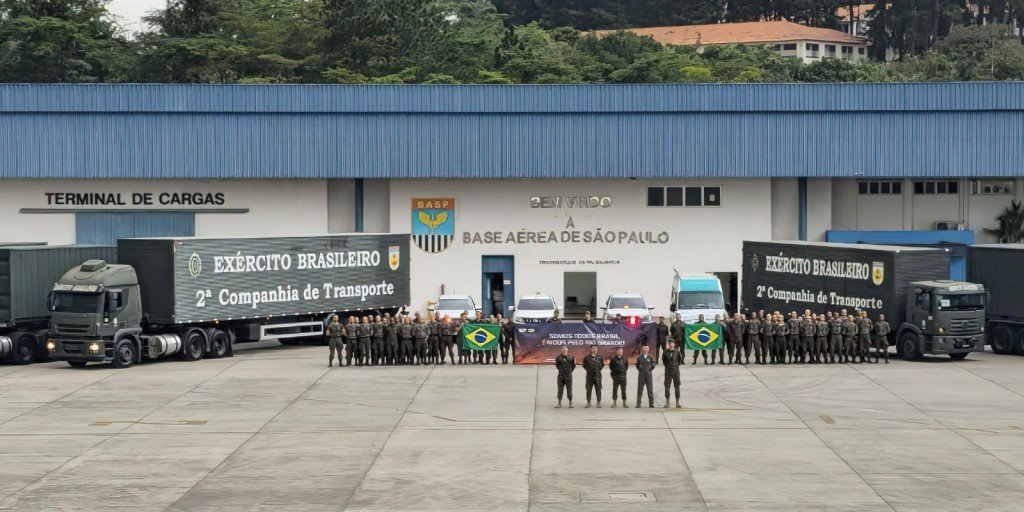 Duas carretas dos Correios e dez caminhões do Exército brasileiro partiram da Base Aérea de São Paulo, em Guarulhos, na manhã desta terça-feira (14), transportando 200 toneladas em donativos para as vítimas das chuvas que estão atingindo o Rio Grande do Sul. O destino final será a Base Aérea de Canoas, na região metropolitana de Porto Alegre. O percurso tem a extensão de 1.093 quilômetros.