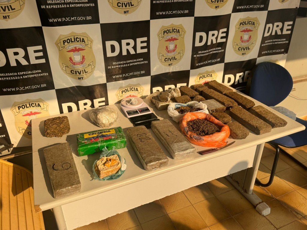 Policiais da Delegacia Especializada de Repressão a Entorpecentes (DRE) flagraram na quinta-feira (29), em Várzea Grande um casal com dez tabletes de maconha e um de pasta base, além de apetrechos usados para pesar e vender os entorpecentes.