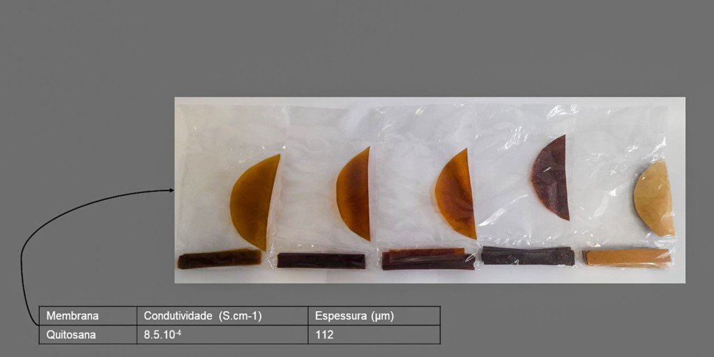 A membrana de quitosana é feita a partir da casca de camarão ou de caranguejo, fartamente encontrada no litoral brasileiro, e substitui uma membrana sintética (nafion) importada e de custo mais elevado. Diferente da membrana nafion, a membrana de quitosana não polui o ambiente quando descartada.