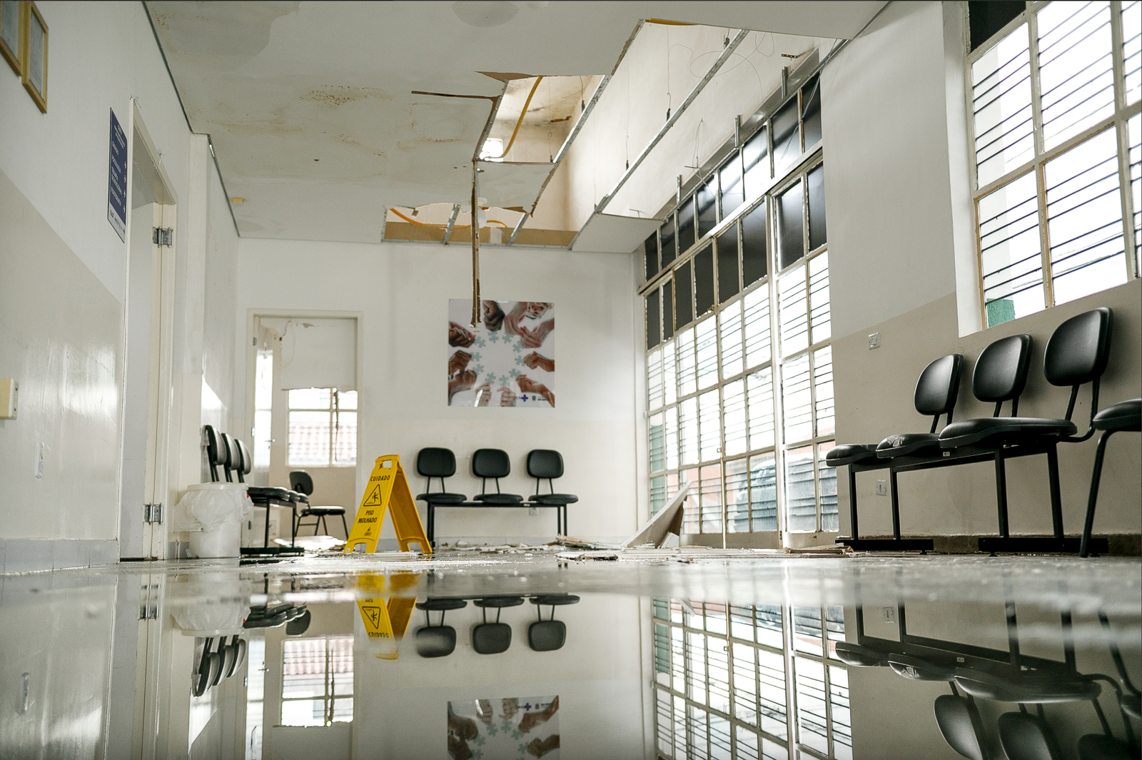 A fisioterapeuta Jessica Gonçalves, responsável técnica da unidade de saúde, informou que desde novembro encaminhou ofícios para a Secretaria Municipal de Saúde cobrando providências a respeito da infiltração de água de chuva no local. Porém, não houve nenhum retorno. “Houve uma negligência que está devidamente comprovada por meio de documentos”, revelou.