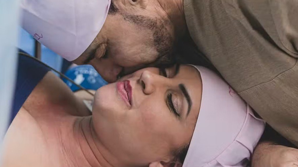 Horas depois da confirmação do nascimento, Graciele compartilhou fotos do parto. A influenciadora foi acompanhada pelo marido, que marcou a pegada da menina no braço, um indício de que deve fazer uma tatuagem em homenagem à caçula.