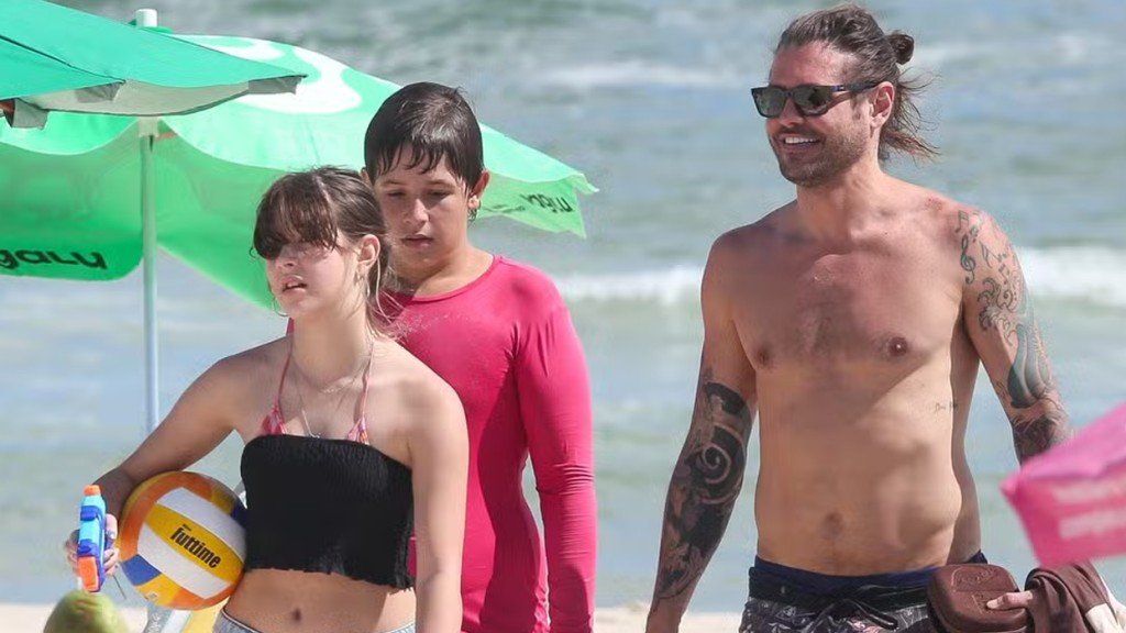 Dado Dolabella curtiu um dia de praia no Rio de Janeiro, neste domingo (24), acompanhado de dois de seus três filhos: Eduardo, de 14 anos, e Ana Flor, de 12.