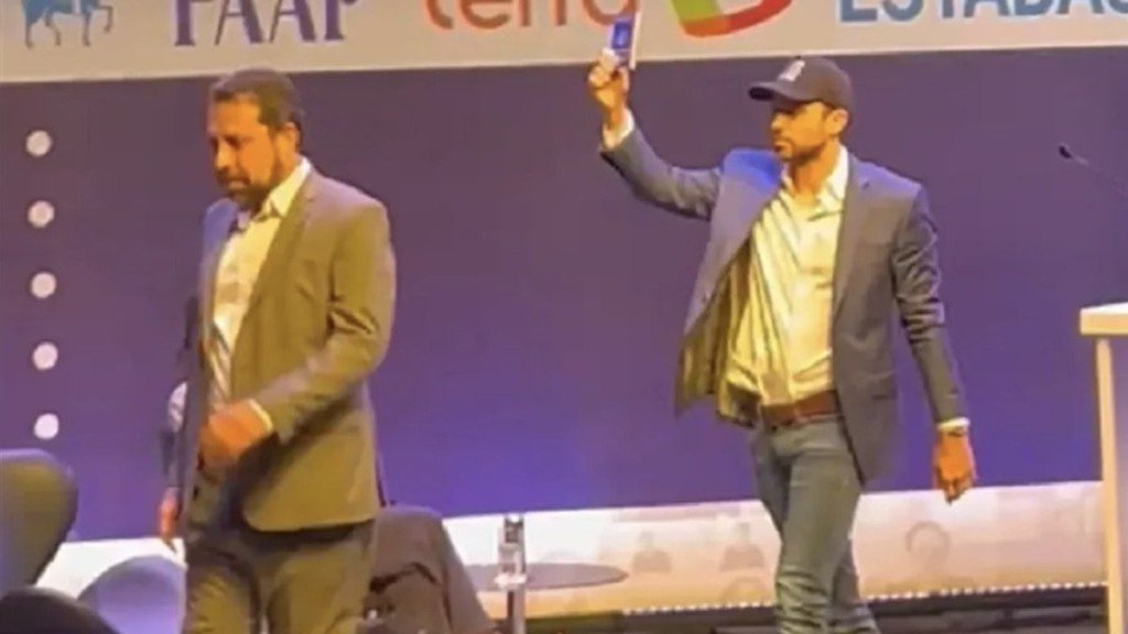 Foi nesse momento que surgiu a carteira de trabalho que, depois, gerou discórdia: “Eu sou o padre Kelmon, eu vou exorcizar o demônio, com a carteira de trabalho, que nunca trabalhou, um grande vagabundo nessa nação. Você nunca vai ser prefeito de São Paulo enquanto tiver homem nessa cidade”.