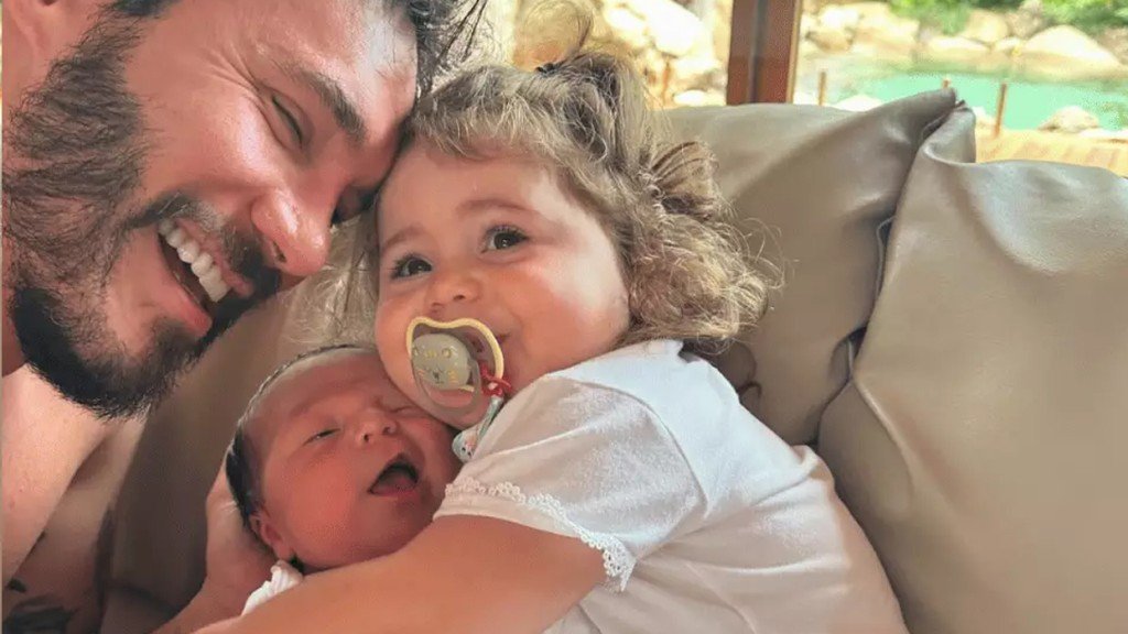 Ele encantou os seguidores com a postagem onde mostra a filha mais velha, Lua, segurando o irmsão, Ravi. “A foto mais linda do meu feed 💜💜💜 Meus filhos!!!”, escreveu ele.