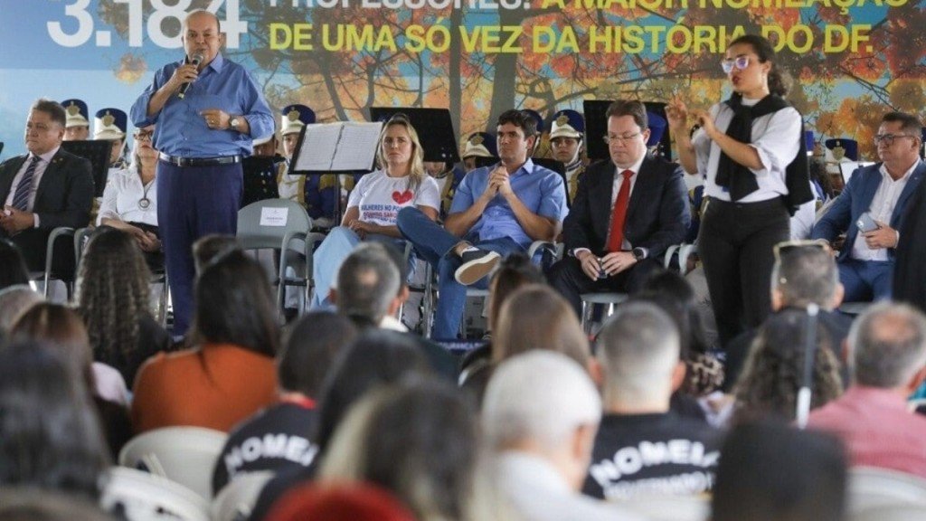 O ensino público do Distrito Federal ganhou o reforço de 3,4 mil servidores nesta sexta-feira (14). Em evento na praça em frente ao Palácio do Buriti, o governador Ibaneis Rocha assinou o decreto de nomeação desses profissionais que vão reforçar a estrutura educacional do Distrito Federal. A nomeação foi feita para os seguintes cargos: 3.104 professores da educação básica, 80 pedagogos e orientadores educacionais e 258 gestores de política pública e gestão.