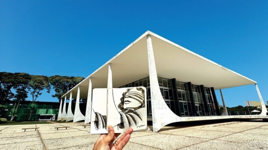Entre os destaques das obras, está a representação da estátua da Justiça, que aparece fazendo manobras de skate com uma espada em mãos, inspirada na personagem Mérida do filme “Valente” da Disney . Esta ilustração busca representar uma visão moderna e jovem da justiça.