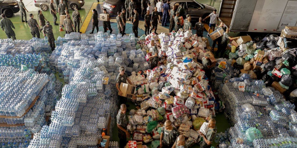 Segundo informações das Forças Armadas, milhares de toneladas de doações já foram transportadas pela FAB desde o início da catástrofe climática que atinge o RS. Outras instituições nacionais, como os Correios, também recebem e fazem o transporte das doações.