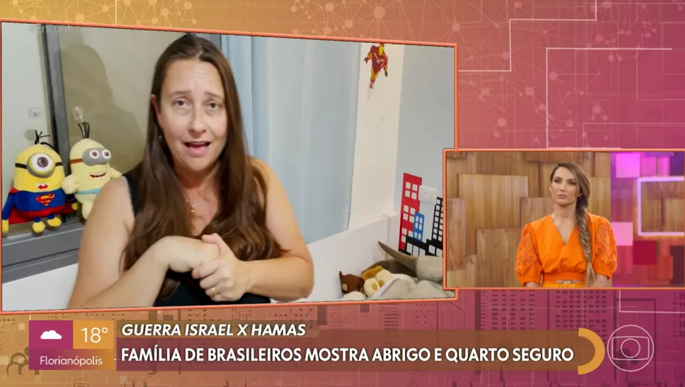 No Encontro desta quarta-feira (18), Patrícia Poeta mostrou como é a rotina de uma família brasileira que vive em Israel em meio aos confrontos que assolam a região. Geruza apresentou o quarto do filho mais novo, Yonatan, de 8 anos, que se tornou o local mais seguro da casa para casos de ataques. Além dos brinquedos e da decoração infantil, a estrutura foi construída com a finalidade de proteger os moradores.