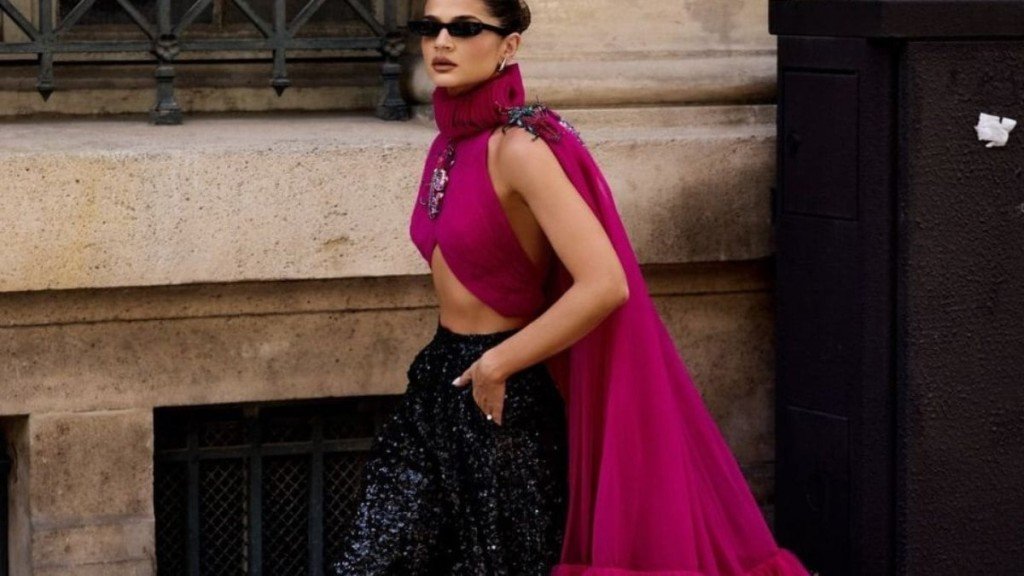 Além de Anitta, outras brasileiras brilharam durante a semana de moda em Paris. Thassia Naves apostou em um look assinado por Rahul Mishra, com muito rosa e brilho e depois usou um modelo Sthephane Rolland em tons terrosos para o desfile da marca.