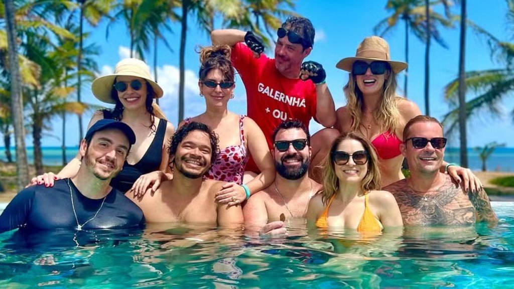 “Galerinha + ou – que é mais mais na vida! São 25 anos de muitas memórias, de uma amizade que nasceu na adolescência e dura até hoje graças ao afeto e respeito que nutrimos um pelo outro. Está sendo mágico reunir quase todo mundo, ouvir sobre os projetos, apresentar filhos, falar da vida, da carreira, do que vivemos… De nós. Lágrimas e sorrisos de, agora adultos, que seguem aprendendo juntos o valor da verdadeira amizade!”, postou Fernanda em seu Instagram ao mostrar os amigos Wagner Santisteban, Karina Dohme, Bruna Thedy, Douglas Aguillar, José Trassi e Camila dos Anjos na piscina. Confira os cliques:
