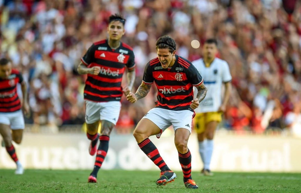 Mas logo depois, o uruguaio foi protagonista do lance que culminou no segundo gol do Mengão. O camisa 14 foi derrubado na área e o árbitro não titubeou para marcar o pênalti. Num primeiro momento, Pedro foi para a cobrança e Paulo Henrique defendeu, mas a arbitragem mandou voltar porque o goleiro havia se adiantado. O centroavante bateu novamente e, desta vez, deslocou o goleiro com categoria: 2 a 0.