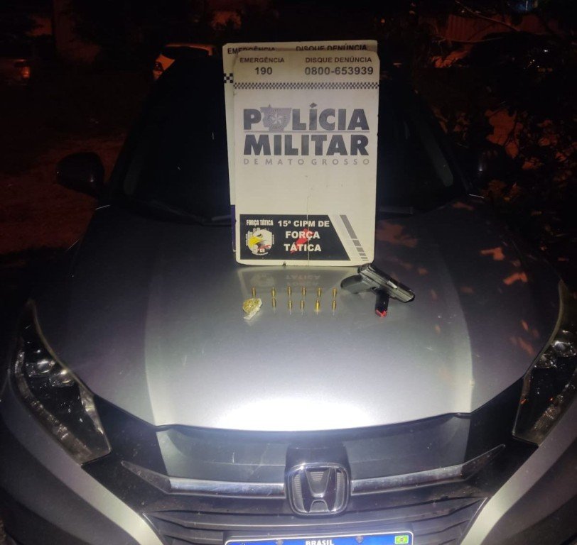 Diante da afirmação da suspeita, a equipe da Força Tática entrou no imóvel e localizou uma pistola de calibre .380 carregada com 11 munições. A suspeita ainda disse que era integrante de uma facção criminosa e que teria abrigado um homem suspeito de tentativa de homicídio registrada na cidade, mas que ele já não se encontrava mais no município.