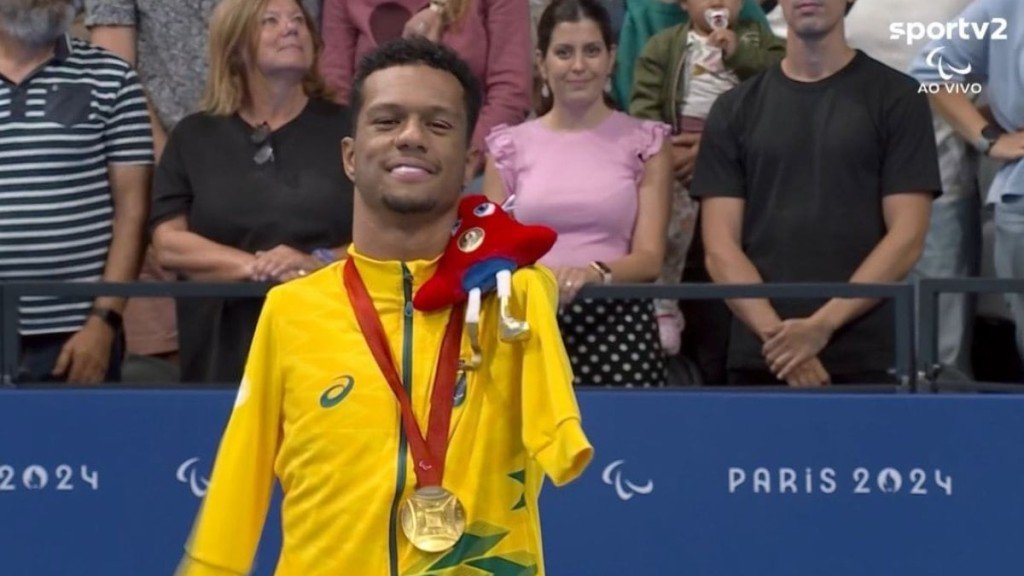 O atleta Gabriel Araújo conquistou, nesta quinta-feira (29), a primeira medalha de ouro brasileira nos J ogos Paralímpicos de Paris . Gabriel ganhou a prova dos 100 metros de costas da classe S2 (limitações físico-motoras) em 1 minuto e 53 segundos.