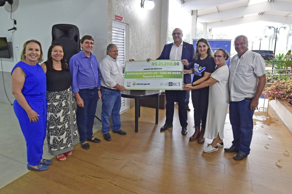 A Secretaria de Estado de Assistência Social e Cidadania (Setasc-MT) e a Secretaria de Estado de Fazenda (Sefaz-MT) entregaram, nesta terça-feira (27.02), o cheque simbólico de R$ 21,2 mil, à Associação Nosso Lar – Casa do Idoso, no município de Tangará da Serra (243 km de Cuiabá). O montante é referente ao primeiro sorteio do ano do Programa Nota MT, que ocorreu em janeiro.