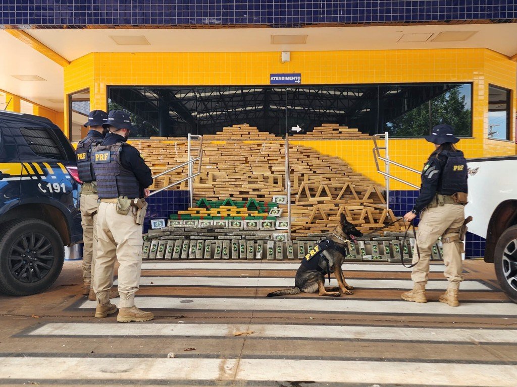 Na vistoria ao veículo, foram encontrados 649 tabletes de maconha, 50 munições de calibre .32 e placas de identificação adulteradas. Os policiais também constataram que a caminhonete havia sido furtada em setembro deste ano em Cuiabá.