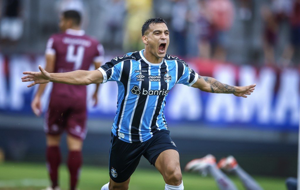Na primeira investida gremista com maior contundência até então na partida, o Tricolor foi efetivo. Aos 20 minutos, em grande jogada coletiva, Diego Costa recebeu a escorada de cabeça de João Pedro, na direita. Logo percebeu a infiltração de Villasanti e soltou o passe no centro. O paraguaio adiantou em velocidade para rasgar a área, passar pelo segundo marcador e fazer belo cruzamento na marca do pênalti. Franco Cristaldo apareceu livre para testar firme. O goleiro defendeu no susto para frente e a bola caiu nos pés de Cristaldo novamente. Com a perna canhota ele concluiu de primeira no canto baixo do goleiro e a bola acabou entrando. 0 a 1!