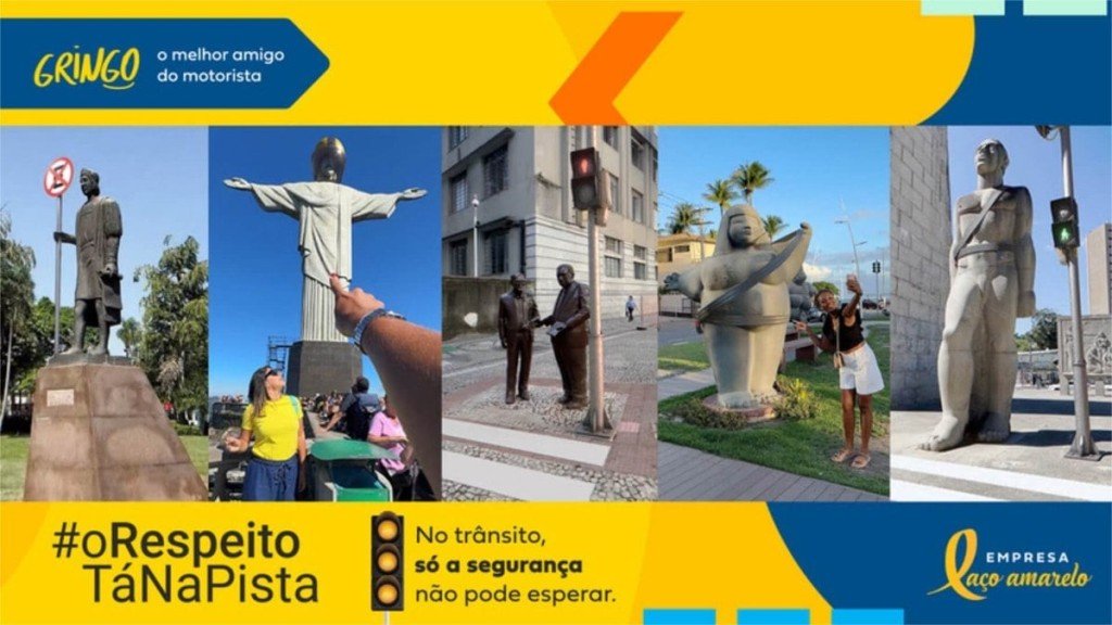 Para reforçar a importância de um trânsito seguro, o Gringo , aplicativo que tem como objetivo simplificar a vida do motorista, vai “equipar” monumentos de todo o Brasil com itens de proteção como cintos de segurança, capacete e placas de atenção em uma ação de Fake Out Of Home (FOOH – técnica de utilizar computação gráfica para simular ativações reais em espaços conhecidos) neste Maio Amarelo. Realizada em parceria com influenciadores digitais regionais, a campanha “O Respeito Tá na Pista: No Trânsito, só a segurança não pode esperar”, quer fortalecer a mensagem de que todos os personagens que compõem o trânsito precisam estar em sintonia para um trânsito verdadeiramente seguro.