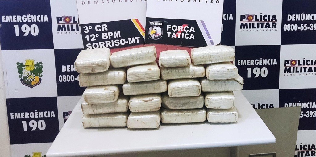 Policiais militares do 2º Pelotão de Força Tática apreenderam, na noite desta sexta-feira (16.08), 20 tabletes de substâncias análogas à skank (supermaconha) e um veículo Renault Logan em Sorriso. Na ação, um homem, de 23 anos, suspeito por tráfico ilícito de drogas, foi preso.