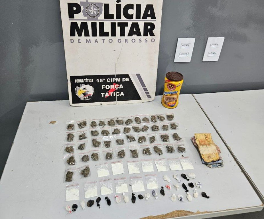 Policiais militares da Força Tática do 2º Comando Regional prenderam um homem de 24 anos por tráfico de drogas, na manhã desta segunda-feira (25.03), em Várzea Grande. Na ação, foram apreendidas 85 porções de drogas, entre substâncias análogas a maconha, pasta base e cocaína.
