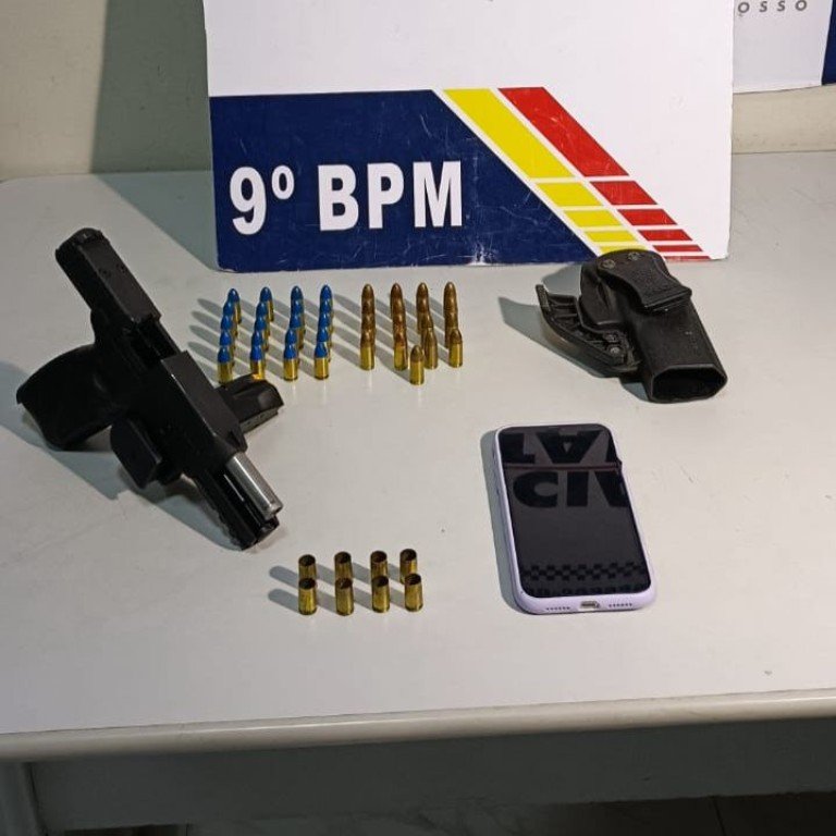 Ainda pelo local, a equipe do 9º BPM encontrou oito munições deflagradas e 37 munições intactas de calibre .9mm. O homem não entregou nenhuma documentação que permitisse o porte e utilização da arma de fogo.
