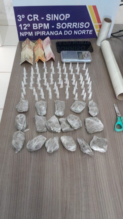 Um homem de 22 anos foi preso em flagrante por tráfico de drogas pela Polícia Militar, nesta terça-feira (26.03), no município de Ipiranga do Norte. Com o suspeito, que se apresentou como membro de uma organização criminosa, a PM apreendeu 66 pinos de cocaína e 17 porções de maconha.
