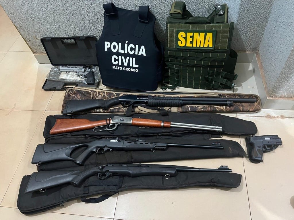 Em revista veicular, foram encontradas seis armas de fogo, entre pistola, revólver, espingarda e carabinas de diferentes calibres, munições, além certa quantidade de pescado de diferentes espécimes como tucunaré, pacu e abotoado.