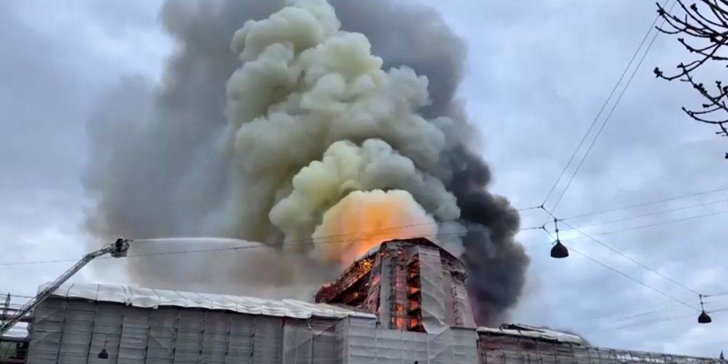 A antiga Bolsa de Valores dinamarquesa, um edifício do século XVII, está em chamas, no que a imprensa está se referindo como “momento Notre Dame” da Dinamarca, em uma comparação com o incêndio que destruiu o emblemático edifício de Paris, que completou 5 anos na segunda-feira (15).![]()