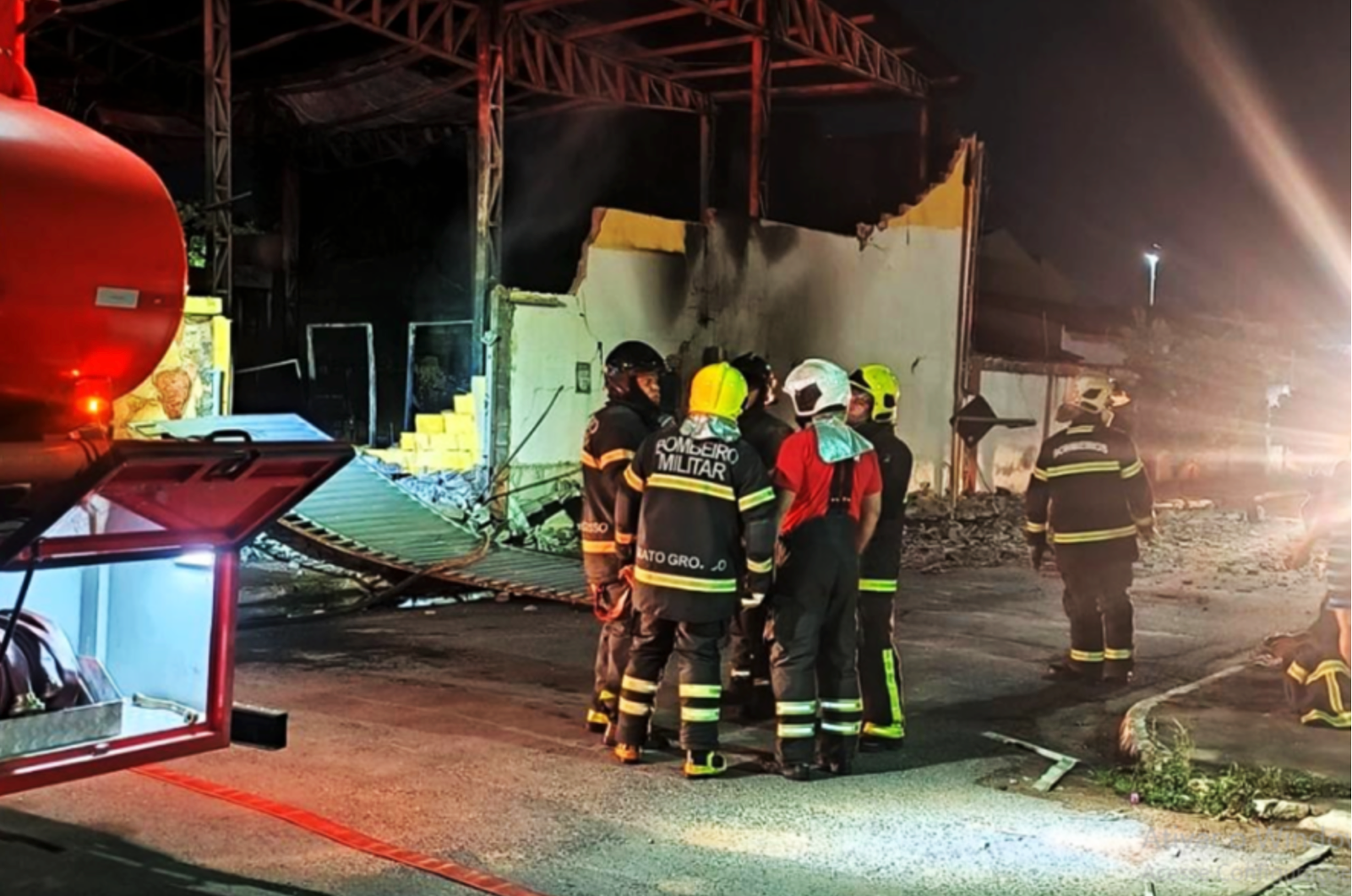 Um incêndio de grandes proporções destruiu uma fábrica de espumas localizada no bairro Nossa Senhora Aparecida, em Cuiabá, na noite desta quinta-feira (20).