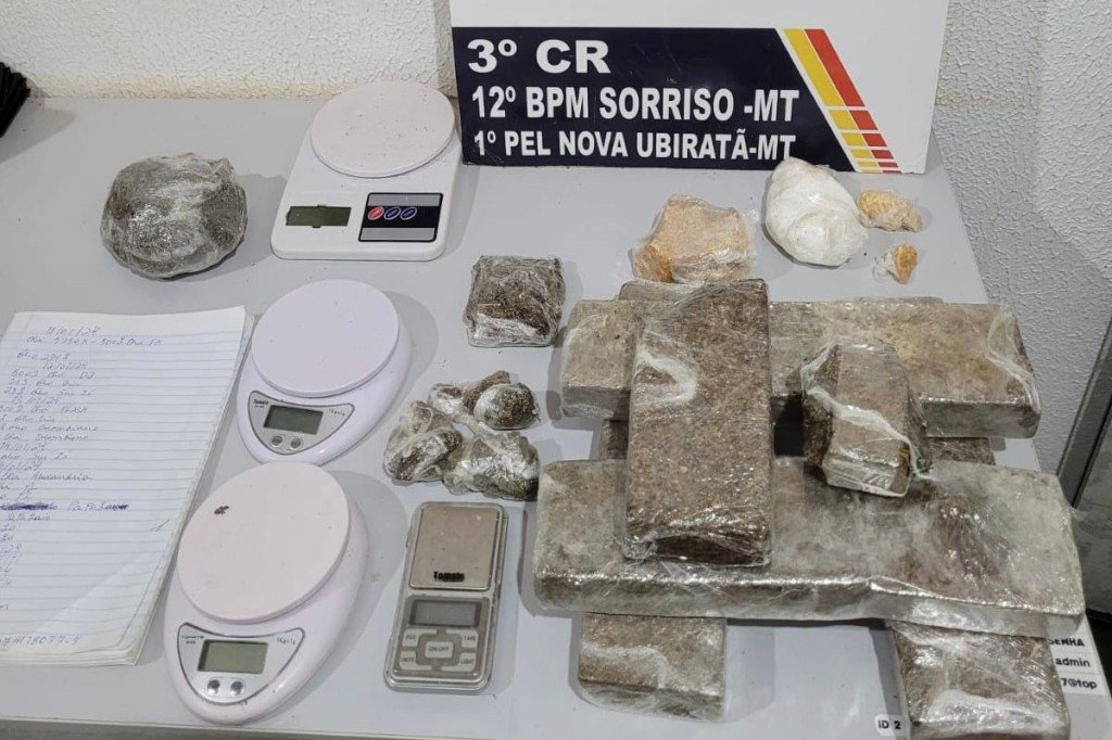 Policiais militares de Nova Ubiratã prenderam em flagrante um homem de 23 anos por tráfico de drogas, na tarde desta segunda-feira (18.03). Na ação, a PM apreendeu tabletes de substância análoga à maconha e porções de pasta base e cocaína na residência do suspeito.