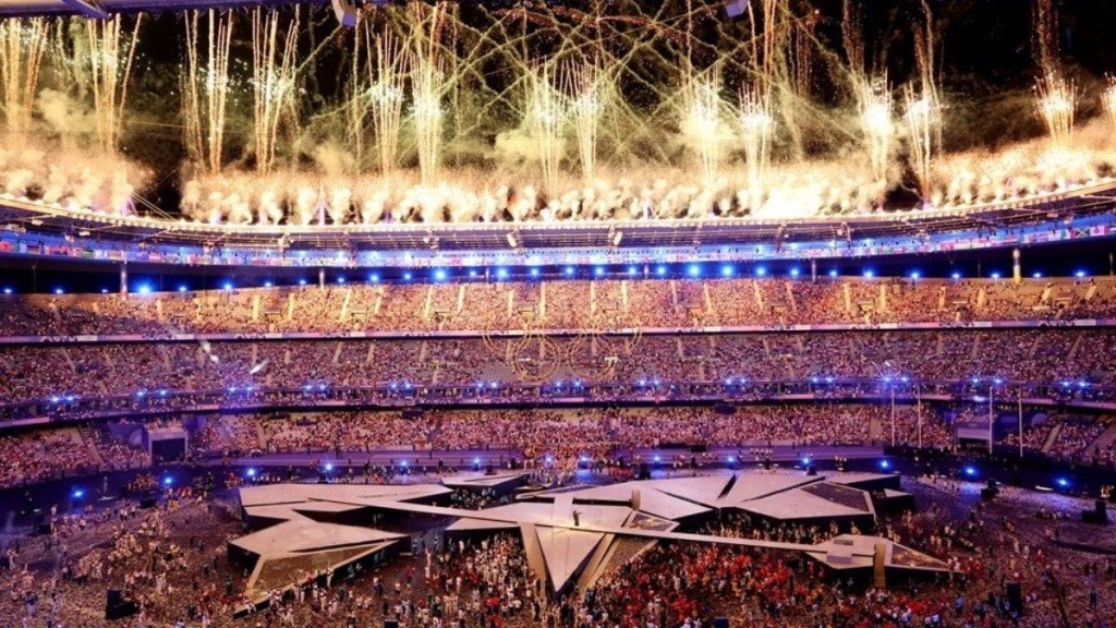 Planejada por Thomas Jolly, diretor artístico também do evento de abertura, a cerimônia como espetáculo artístico que fechou os Jogos de Paris-24 começou depois de 1h15, assim que as luzes se apagaram e o estádio virou um teatro. O estádio se tornou um show de luzes à medida que piscaram nas arquibancadas milhares de pulseiras de LED – semelhante às dos shows do Coldplay – distribuídas pelos organizadores.