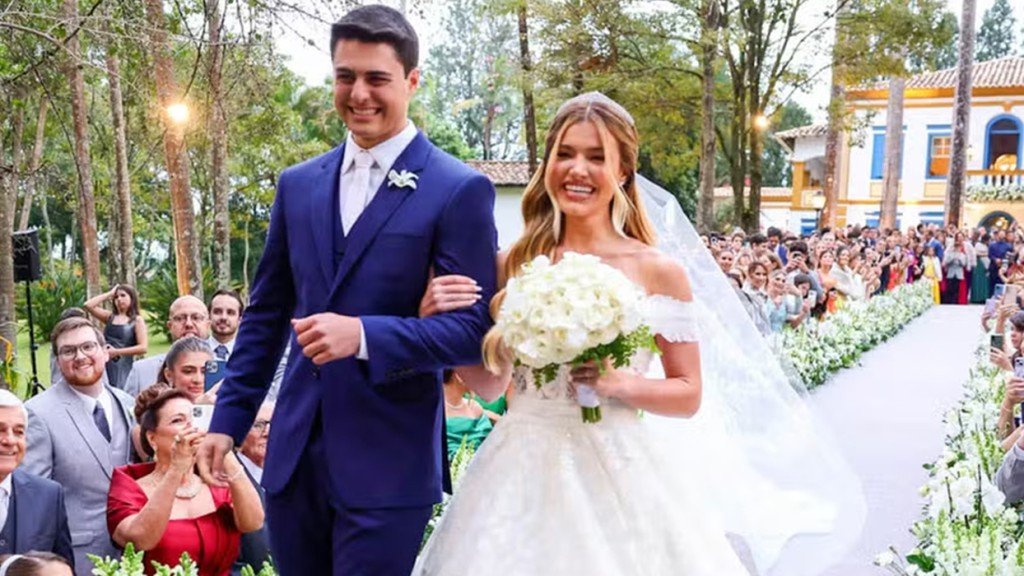 Júlia Vieira e Luigi César se casaram no final da tarde desta terça-feira (30), na Fazenda Santa Barbara, em Itatiba, interior de São Paulo, em uma cerimônia transmitida ao vivo no canal do YouTube da jovem, de 21 anos.