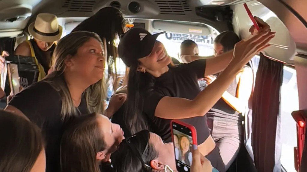 “A van estava atrapalhando o trânsito, coloquei todo mundo para dentro”, disse ela, bem-humorada, na legenda do vídeo em que aparece fazendo fotos, vídeos e interagindo com os fãs dentro do carro. A cantora ainda ouviu os elogios e se divertiu com a ação.