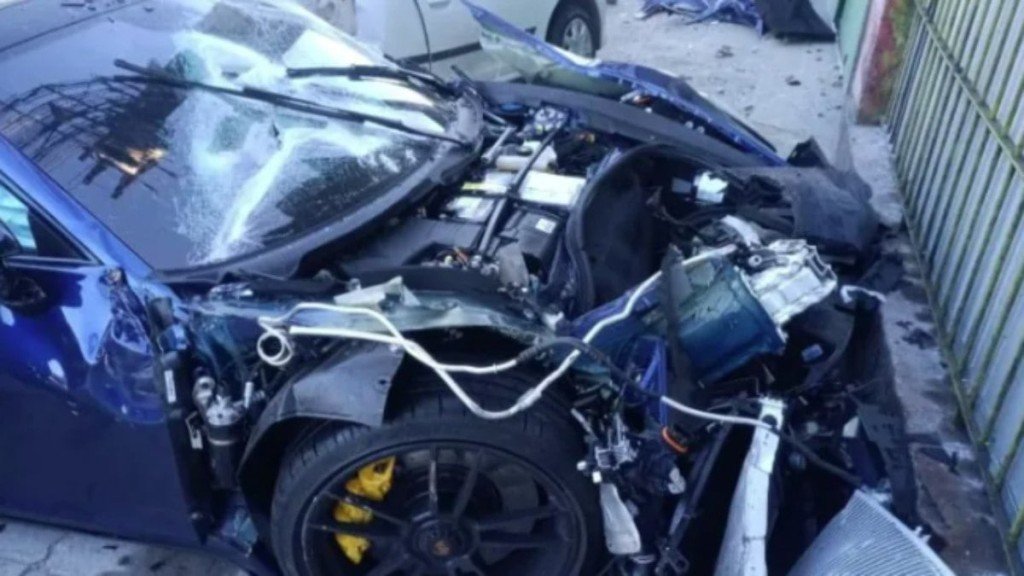 Porsche destruída após acidente em São Paulo na madrugada de domingo (31)