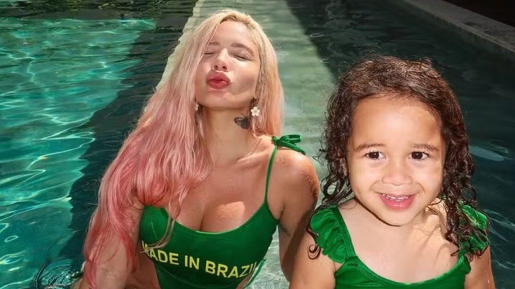 Karoline Lima, de 28 anos, e a filha, Cecília, de 2, entraram no clima olímpico e nesta sexta-feira (2), quando o Brasil ganhou a primeira medalha de ouro em Paris, e posaram com um biquíni nas cores da bandeira do Brasil para curtir uma piscina na casa de Léo Pereira, o namorado da influenciadora digital.