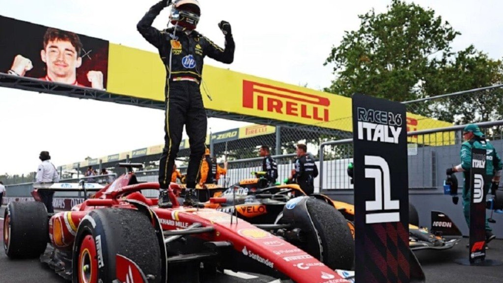 Charles Leclerc é o vencedor do Grande Prêmio da Itália de Fórmula 1 . O monegasco conquistou um triunfo surpreendente no circuito de Monza graças à uma estratégia perfeita da Ferrari, que apostou em apenas uma parada e conseguiu colocar um de seus pilotos no lugar mais alto do pódio. Carlos Sainz foi o quarto, atrás da dupla da McLaren – Oscar Piastri e Lando Norris, que conseguiu fazer a volta mais rápida no último instante.