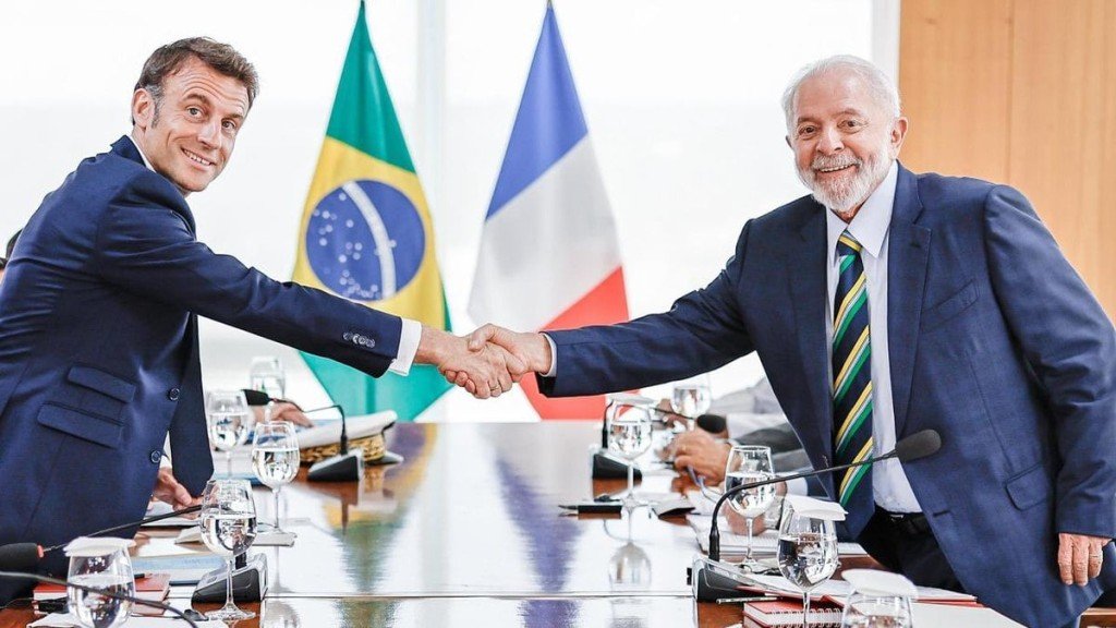“A maneira com que [Lula] conseguiu reconstituir os equilíbrios da democracia e levar a cabo esse debate internacional significa muitíssimo para nós”, acrescentou Macron.