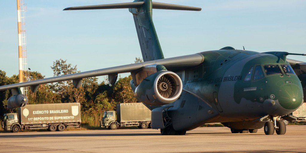 Duas aeronaves KC-390 Millennium, do Primeiro Grupo de Transporte de Tropa (1° GTT), Esquadrão Zeus da Força Aérea Brasileira (FAB), decolaram, neste sábado (11), às 7h30, da Base Aérea de Brasília, transportando cerca de 40 toneladas de itens doados, 20 em cada aeronave, em direção à Base Aérea de Canoas (RS).![]()