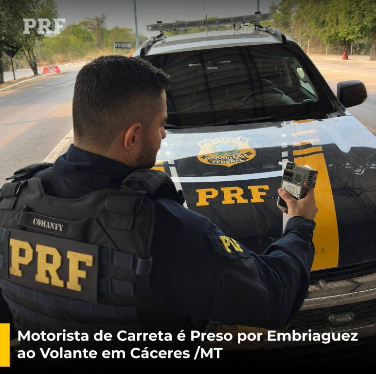 Na madrugada desta quinta-feira (08/08), a Polícia Rodoviária Federal (PRF) prendeu um motorista de uma carreta de nove eixos por conduzir o veículo alcoolizado. Por volta das 4h50, em frente à Unidade Operacional em Cáceres (MT), uma equipe abordou o veículo, que transitava em horário não permitido.