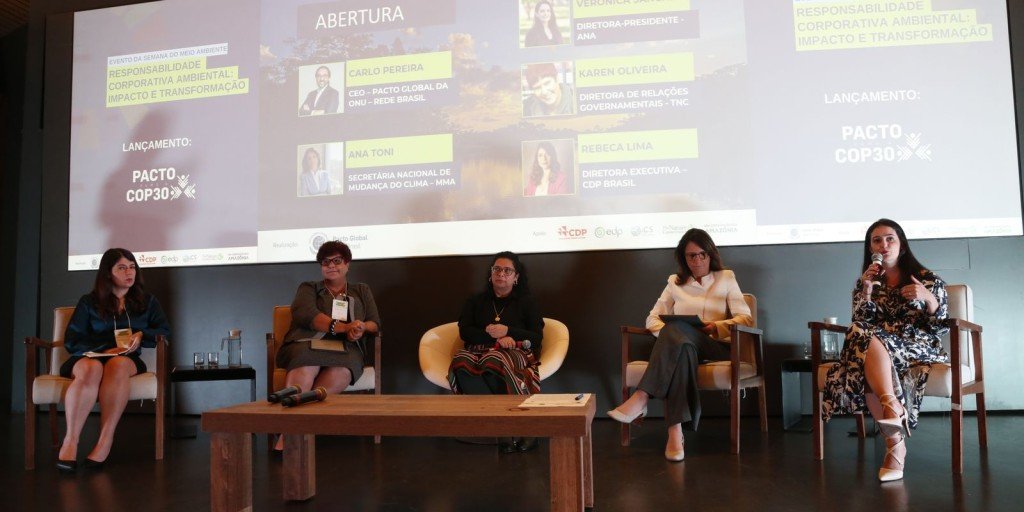 “O Pacto [Global] é uma rede de empresas em prol do desenvolvimento sustentável. Hoje lançamos esse programa que é composto de vários projetos para que as empresas que fazem parte da rede se engajem e caminhem conosco entregando resultados concretos no ano que vem, na COP30, em Belém”, disse Camila Valverde, diretora de impacto do Pacto Global da ONU-Rede Brasil, no evento Responsabilidade Corporativa Ambiental: Impacto e Transformação, que ocorreu no Museu da Língua Portuguesa, na capital paulista.